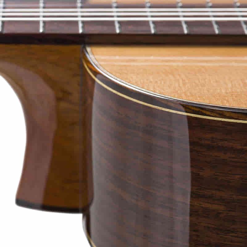 Duke Meister C - Das Meister Modell ist mit einer Decke aus Zeder. Boden und Zargen sind aus ostindischem Palisander. Der Hals ist aus Zeder und mit einer Verstärkung aus ostindischem Palisander versehen. Bei der Mechanik handelt es sich um eine hochwertige Der Jung. Die Oberfläche ist hochglanz lackiert.