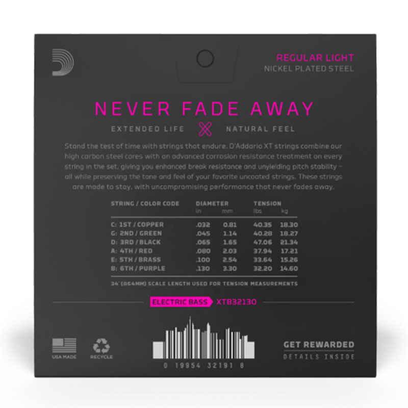D'Addario XT Nickel, Regular Light, 6 Saiten, 32-130 Strings for Electric Bass Guitar