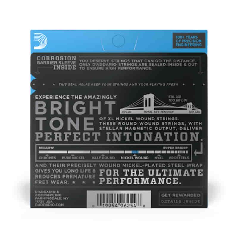 EXL148 is an extreme hybrid set that is optimally suited for down-tuning guitars to D, and will also appeal to guitarists who prefer thicker strings.